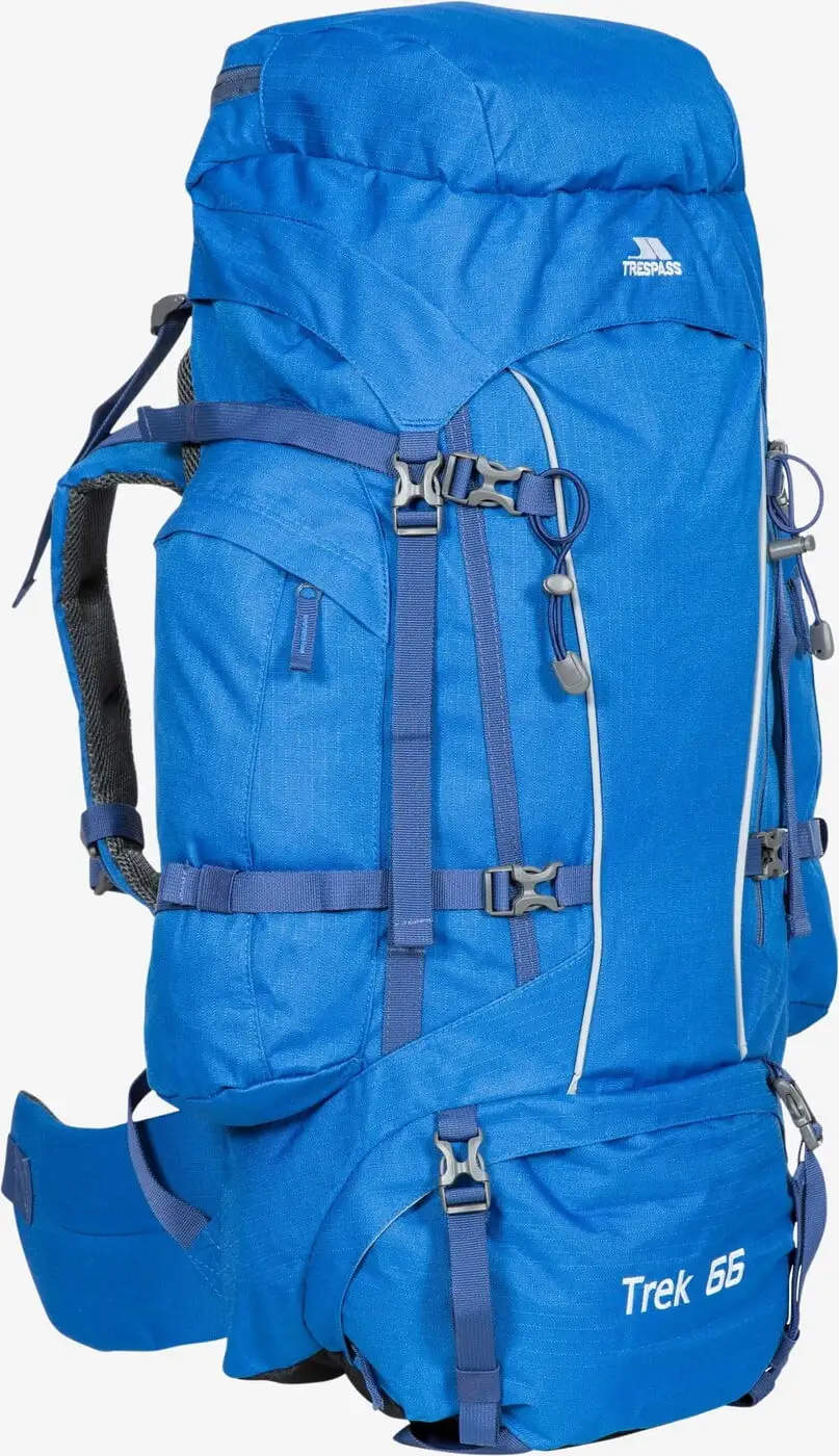 Trek 66 rygsækken fra skotske Trespass er en slidstærk og komfortabel backpackerrygsæk med justerbart rygsystem, polstrerede skulderstropper og hoftebælte og 66 liters volumen – til en budgetvenlig pris!